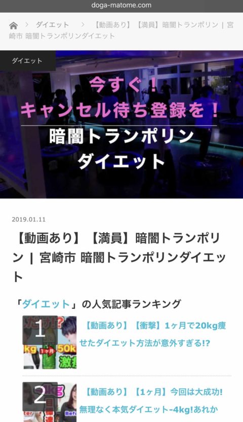 2つの「ダイエット動画まとめサイト」に、暗闇トランポリンのサンプル動画が、掲載されました。